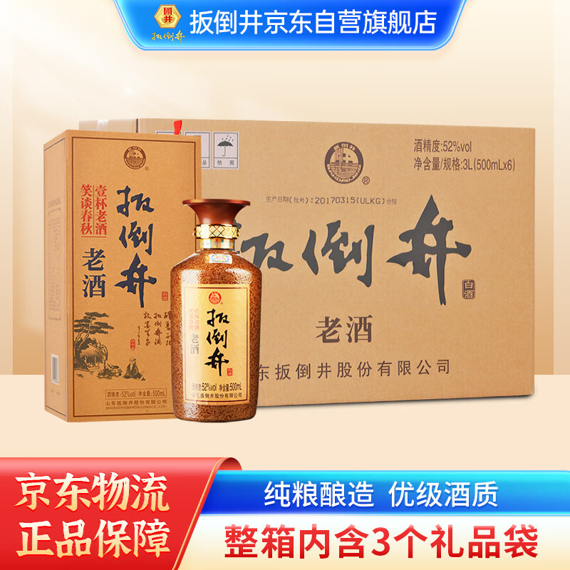 扳倒井老酒浓香型白酒52度500ml*6瓶整箱装 配礼品袋 山东白酒价格:299.00元!