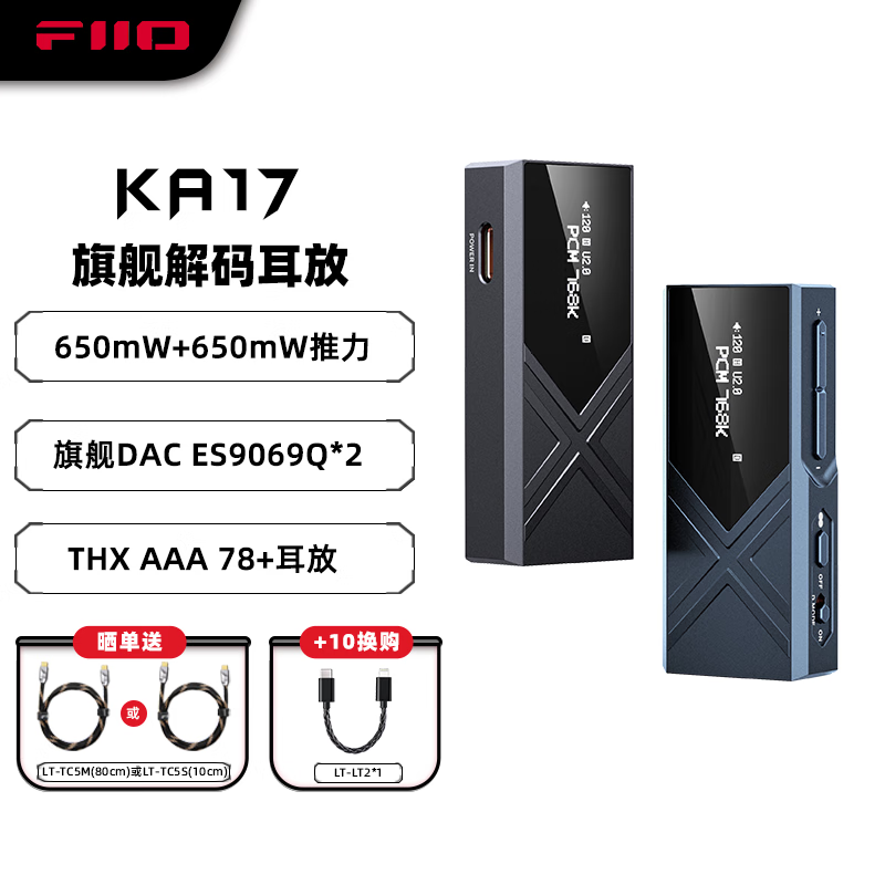 飞傲(FiiO)KA17旗舰解码耳放HIFI平衡4.4电脑声卡安卓手机功率放大器便携小尾巴转接线 Pura70pro适用 黑色价格:999.00元!