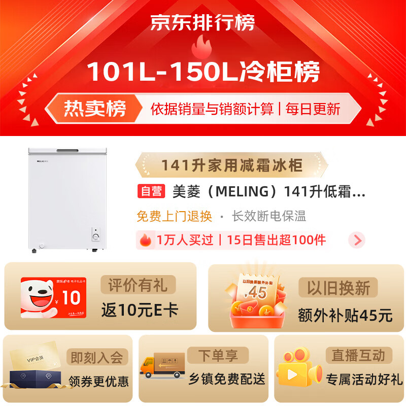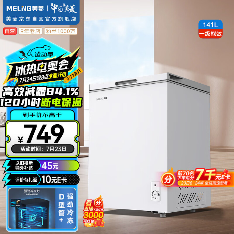 美菱(MeiLing)141升低霜家用冰柜冷藏冷冻转换单温冷柜-35°速冻一级能效节能租房小冰箱BC/BD-141DT白以旧换新价格:749.00元!