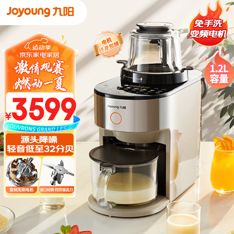 九阳免洗破壁机家用轻音多功能不用手洗榨汁机豆浆机 热烘除菌 轻音低至32分贝Y9价格:3599.00元!