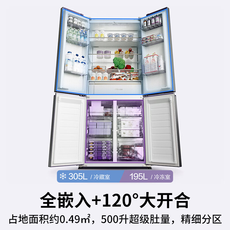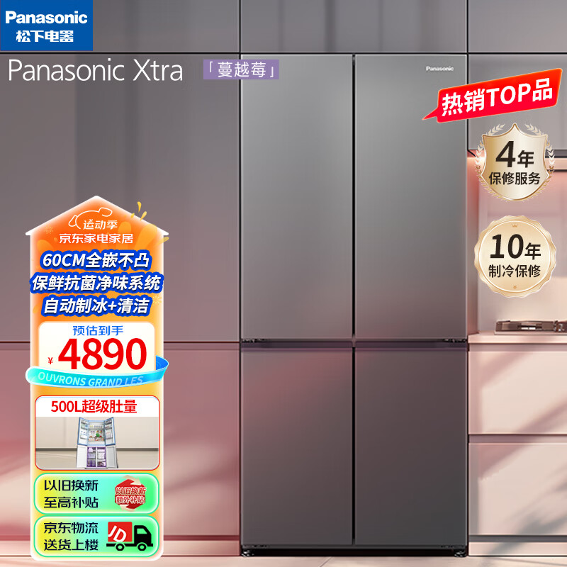 松下(Panasonic)Xtra蔓越莓冰箱 500升60厘米超薄零距离嵌入式十字对开门大容量家用电冰箱四开门风冷无霜XD50C5A价格:4990.00元!