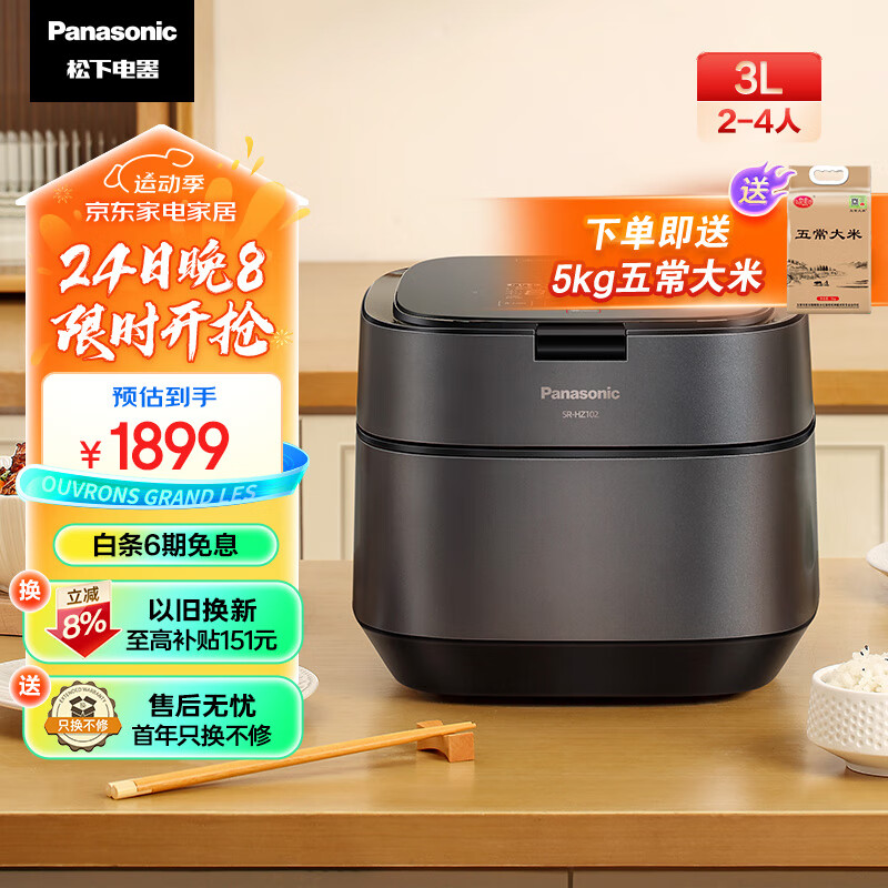 松下(Panasonic)饭之舞电饭煲3L五段IH变频加热电饭煲 家用电饭锅2-6人 备长炭加厚铜釜 可预约 SR-HZ102价格:2699.00元!