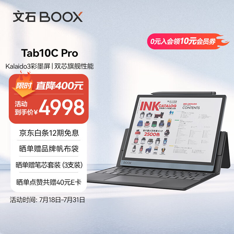 BOOX文石 Tab10C Pro 10.3英寸电子书阅读器平板 墨水屏电纸书电子纸 便携阅读看书 键盘保护套装价格:4998.00元!