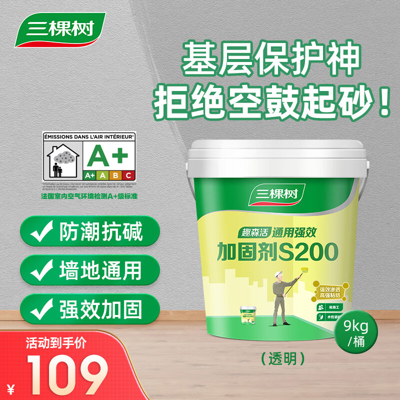 三棵树漆(SKSHU)界面剂墙固彩色内墙固沙剂增强基层抗碱防潮地固墙面加固剂 9KG价格:136.25元!