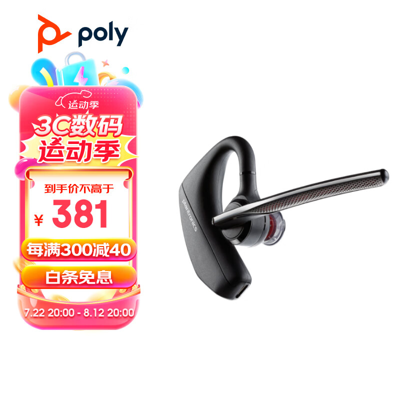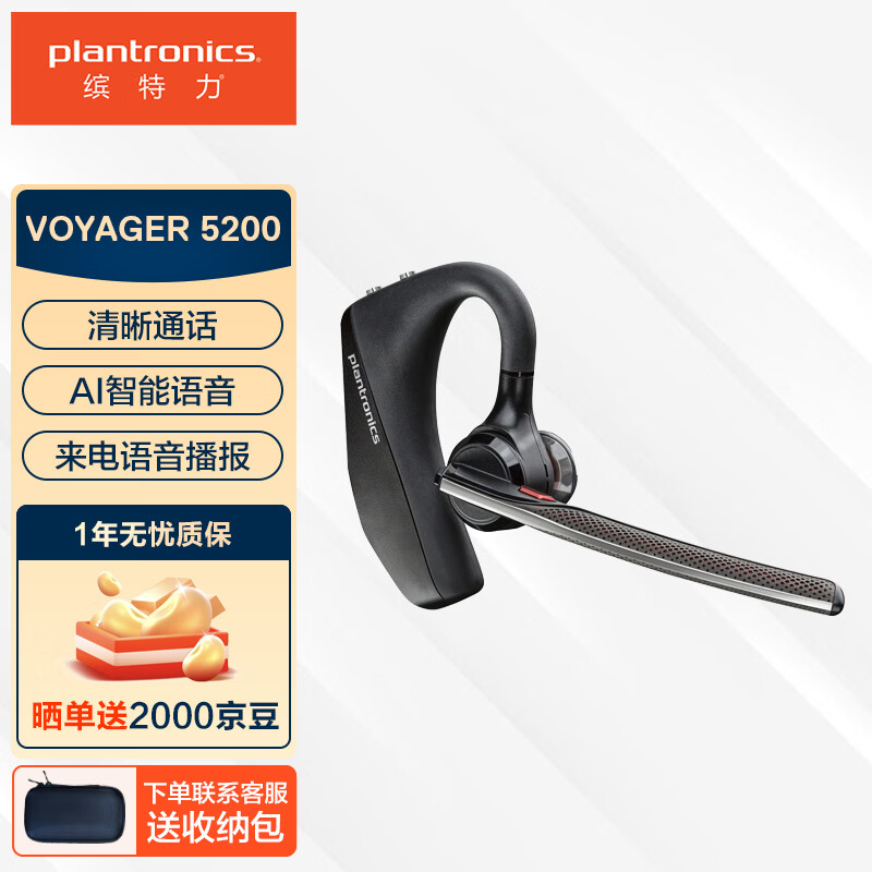 缤特力(PLANTRONICS)Voyager 5200单耳蓝牙耳机 智能降噪 商务车载 开车通话 远程办公 高清语音 来电语音播报 POTE16价格:421.00元!