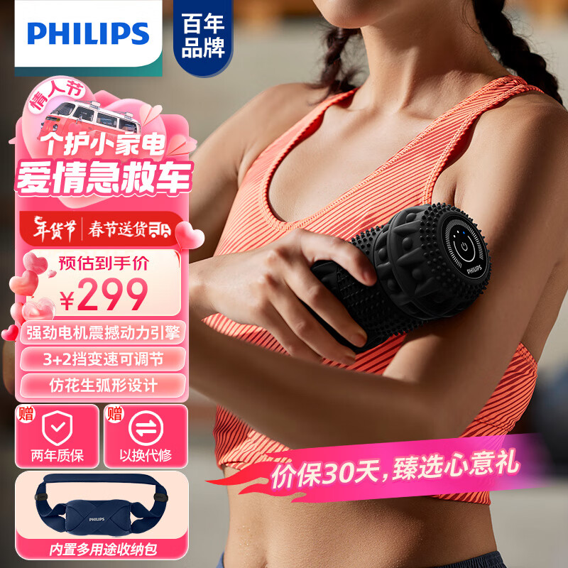 飞利浦(PHILIPS)滚轮肌肉按摩器 全身肌肉颈椎筋膜滚压放松器 肩颈腿腰健身运动生日礼物节日送礼礼物礼品3601G价格:332.00元!