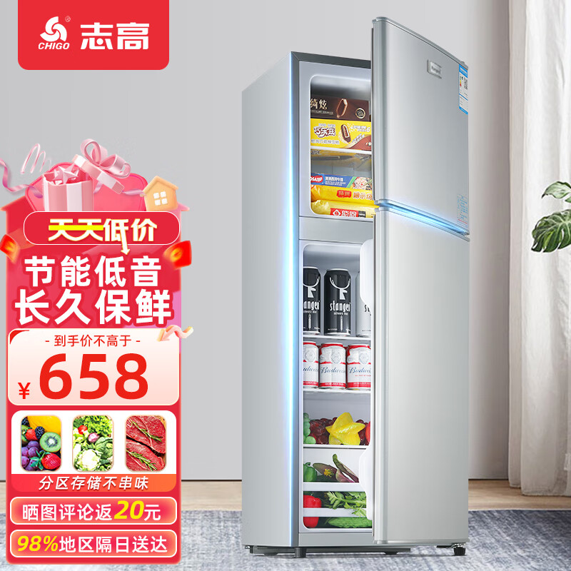 志高(CHIGO)172L冰箱小型家用 宿舍租房优选 冷藏冷冻双开门迷你电冰箱 节能保鲜低噪 BCD-172D 银色价格:678.00元!