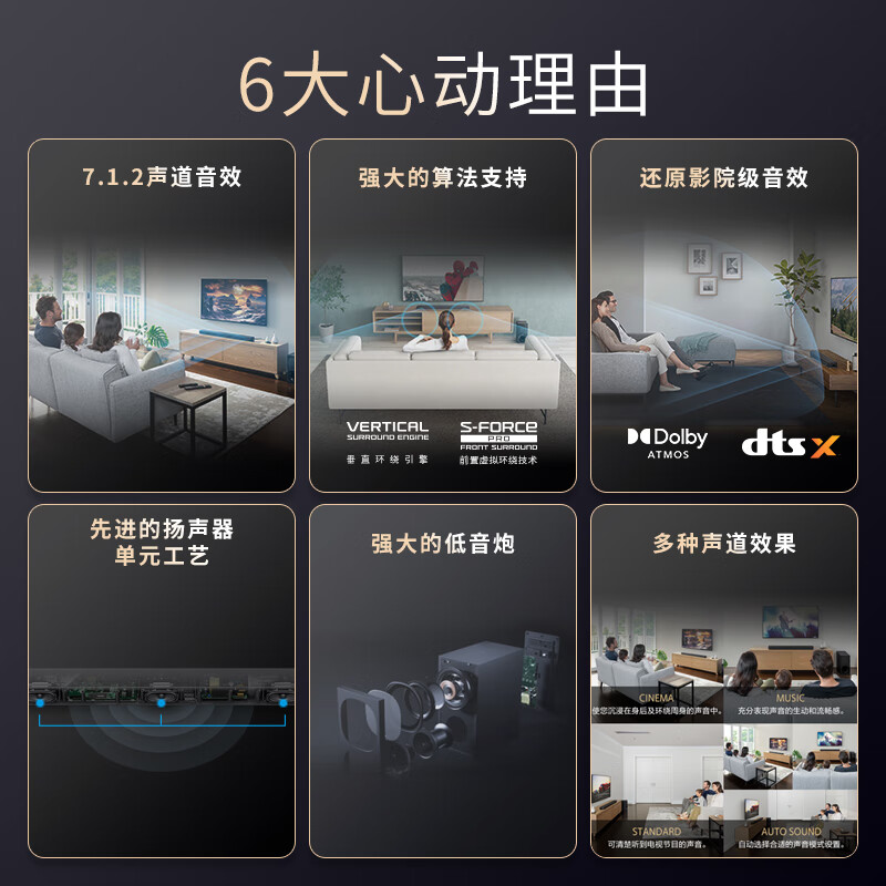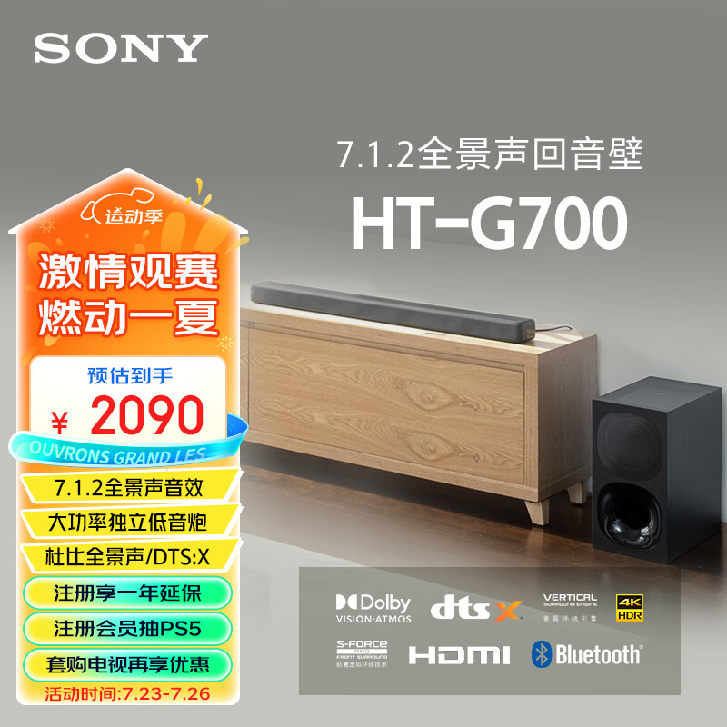 索尼(SONY)HT-G700 7.1.2声道音效 大功率独立低音炮 全景声 家庭影院 回音壁 soundbar 电视音响 4K 蓝牙价格:2190.00元!