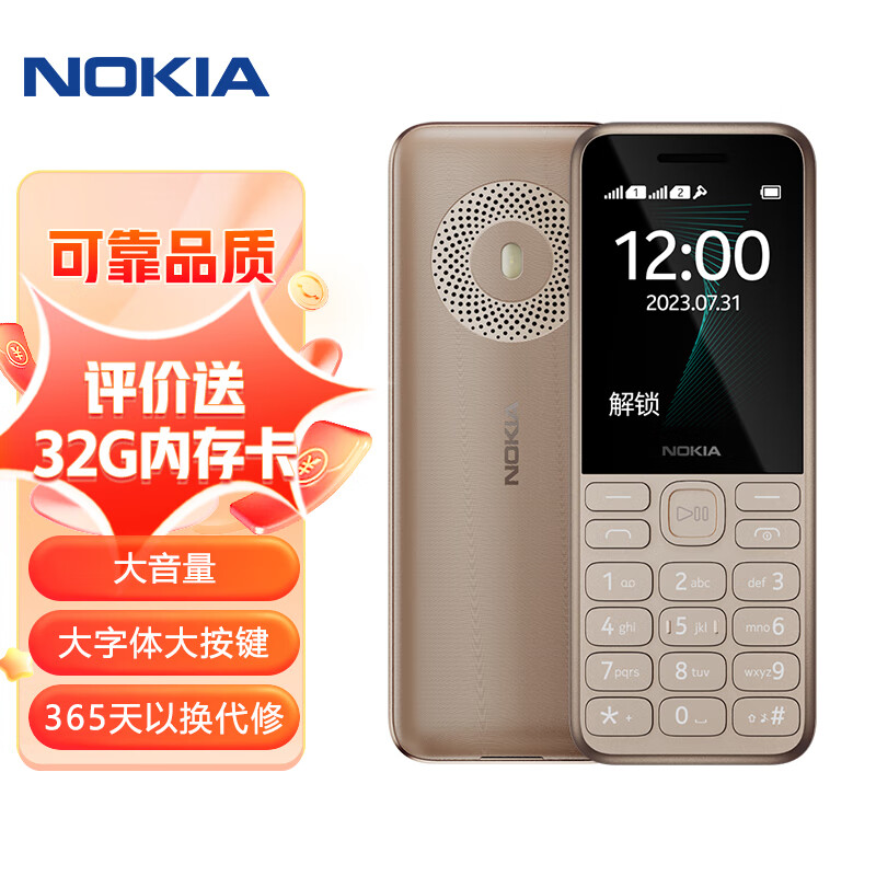 诺基亚(NOKIA)125(2023)浅金色 直板按键 移动2G手机 双卡双待 老人老年手机 学生备用功能机 超长待机价格:179.00元!