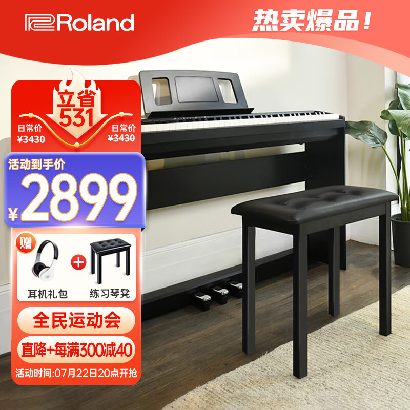 罗兰(Roland)考级智能初学88键重锤电钢琴FP18主机+定制木架+琴凳礼包价格:3339.00元!