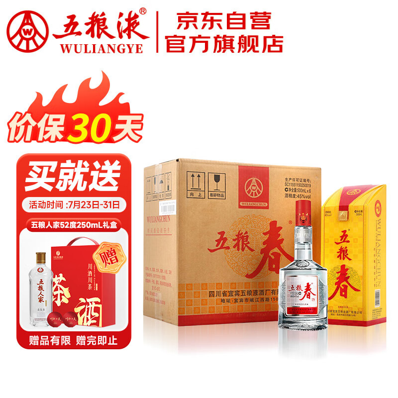 五粮液股份 五粮春 浓香型白酒 45度 500ml*6瓶 整箱装 中秋送礼价格:1126.00元!