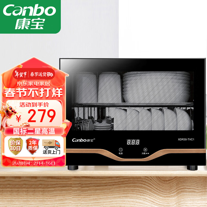 康宝(Canbo)消毒柜 家用 小型 立式高温消毒碗柜 小型 迷你桌面碗筷餐具茶杯二台式桌面 XDR30-TVC1价格:278.90元!