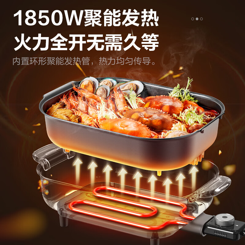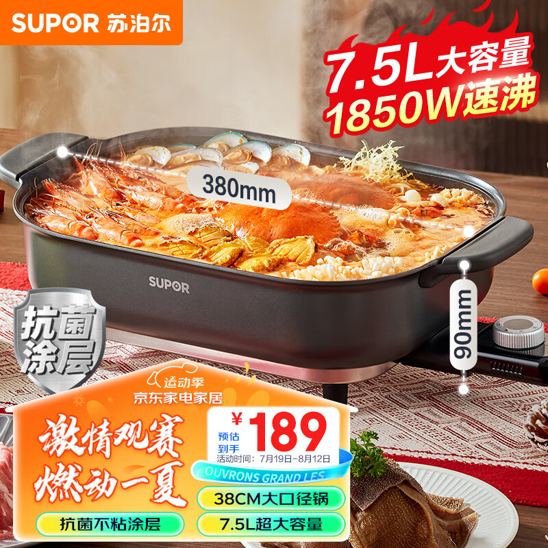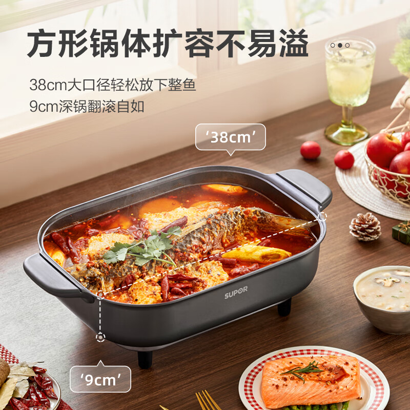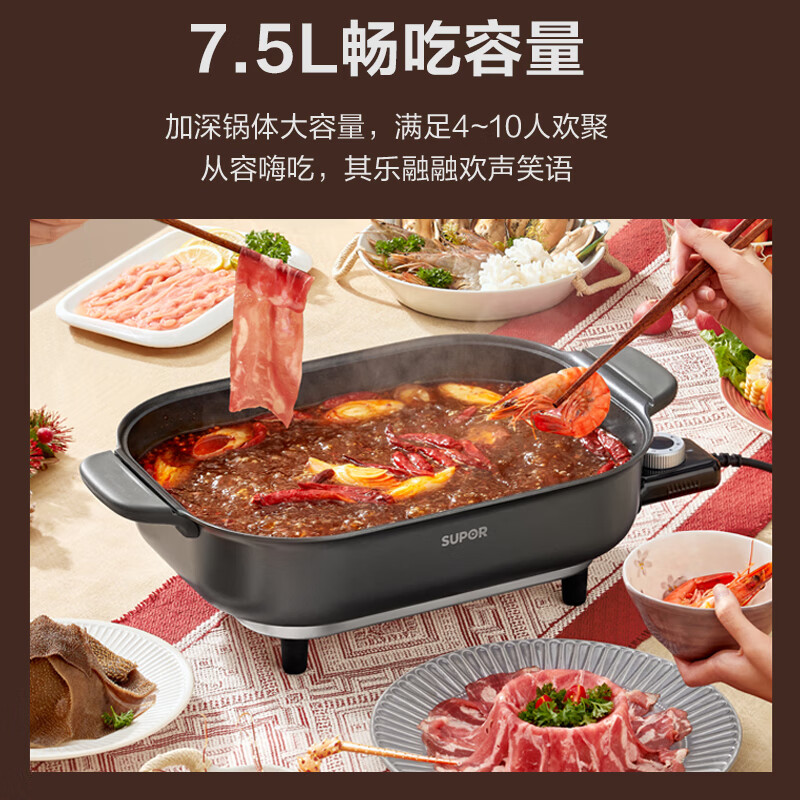 苏泊尔(SUPOR)电火锅 电煮锅 7.5L大容量家用火锅专用锅1850W涮烤一体多功能电热锅烤肉烤鱼锅 H3727FK853价格:189.00元!