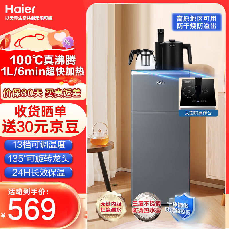 海尔(Haier)茶吧机 家用立式多功能智能高端饮水机 可调温全自动上水下置水桶 温热型 YRQ06D-CB价格:569.00元!