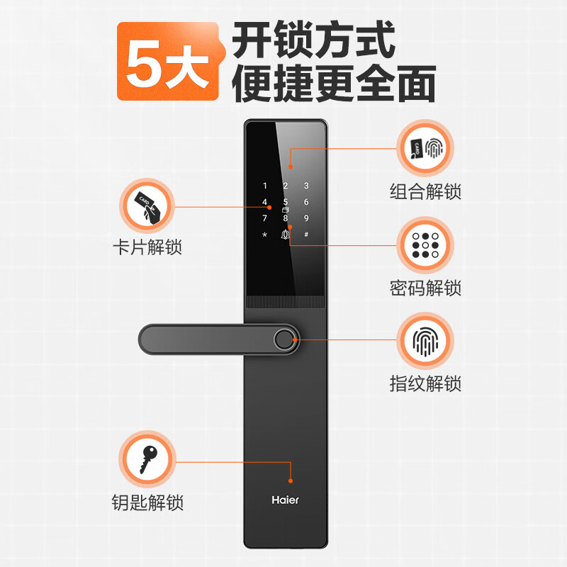 海尔智能门锁T15指纹锁 C级锁芯 入户门 防盗门锁 门卡密码锁 电子锁 五种解锁方式【标准锁体】价格:599.00元!