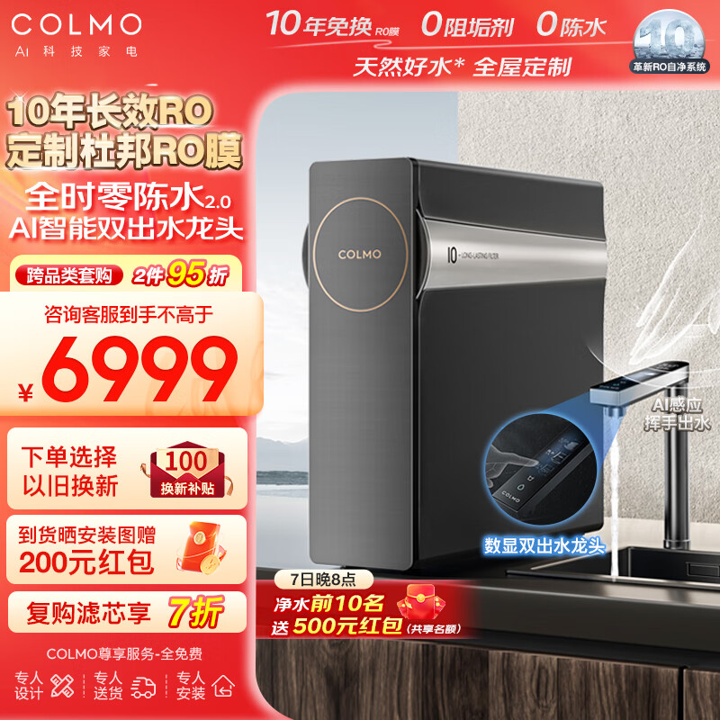 COLMO净水器B159 家用净水机厨房厨下式净饮机直饮机 10年RO反渗透净水机 挥手智控双出水智能龙头价格:7499.00元!