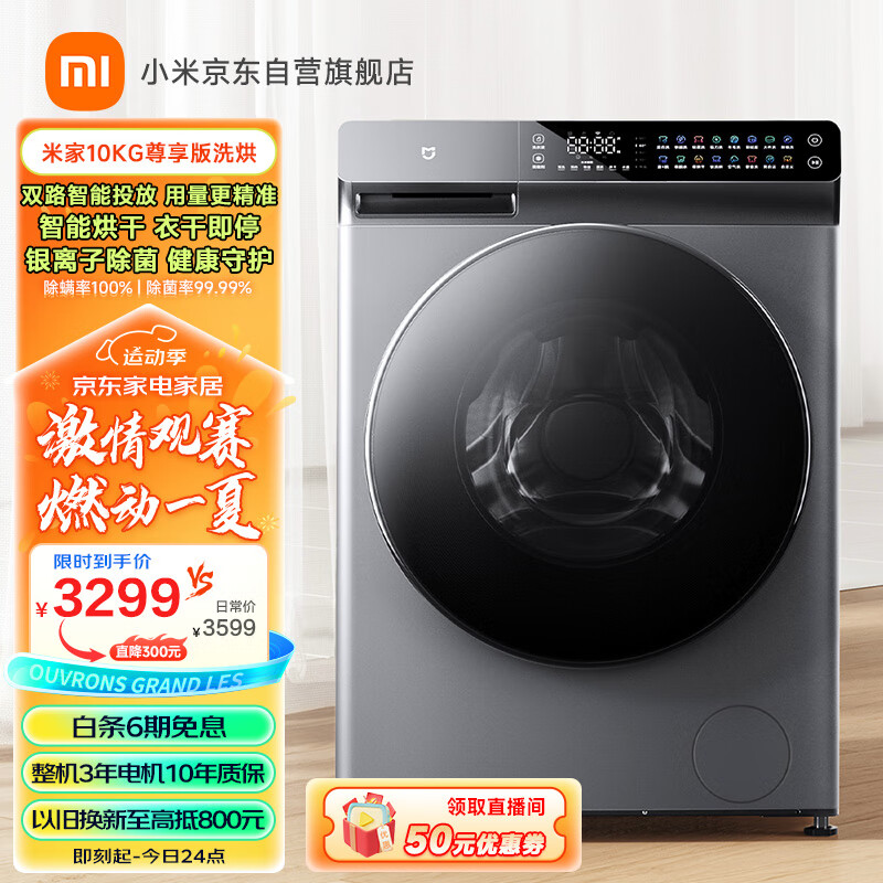 米家小米出品滚筒洗衣机全自动 10kg尊享版洗烘一体 直驱电机双路智能投放炫彩触控屏 XHQG100MJ203价格:3299.00元!