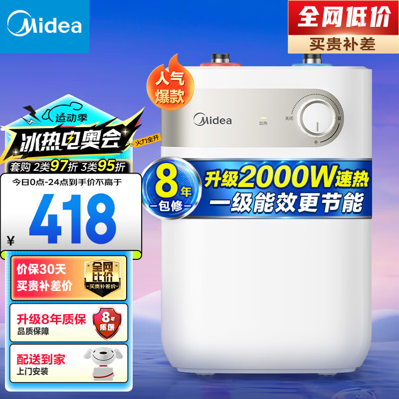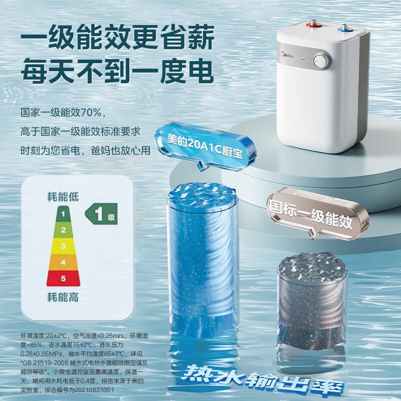 美的(Midea)迷你小厨宝电热水器2000W家用速热5升连续出水29升一级能效节能省电上出水多重安防F05-20A1C(ES)价格:418.00元!