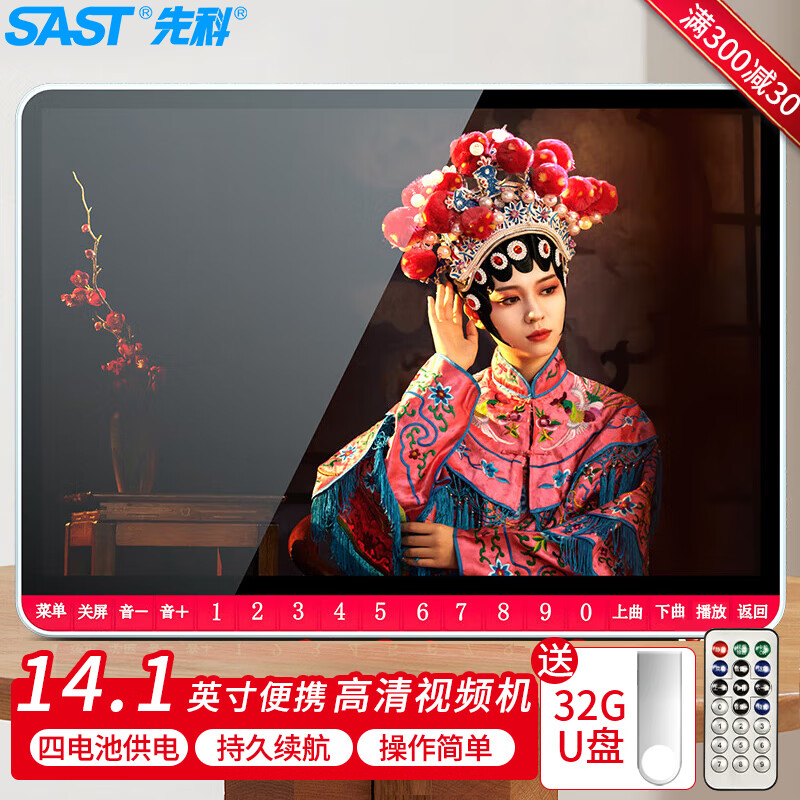 先科(SAST)M-602老人唱戏机便携式看戏听戏收音机老年广场舞视频音响带显示屏移动小电视音箱播放器32G价格:409.00元!