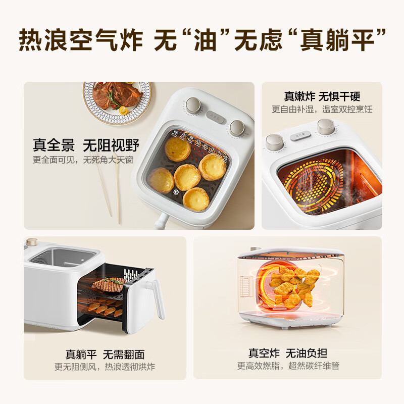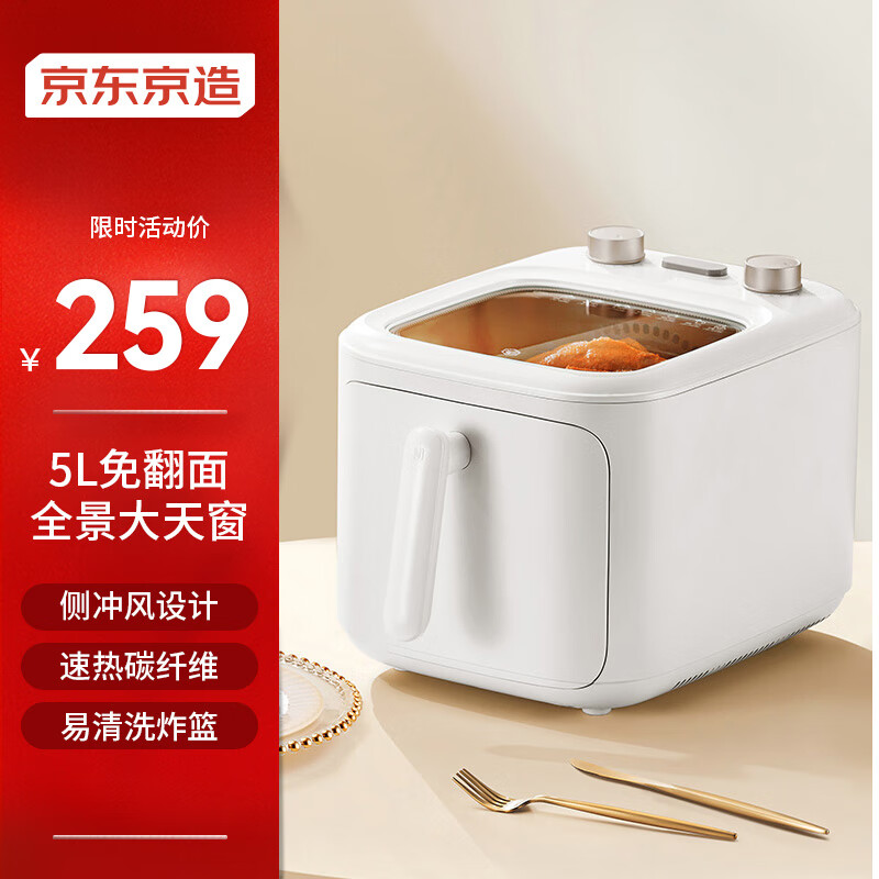 京东京造空气炸锅全景可视 免翻面蒸汽嫩炸5L大容量家用炸薯条大功率无油低脂精准控温控时 生日礼物女价格:269.00元!