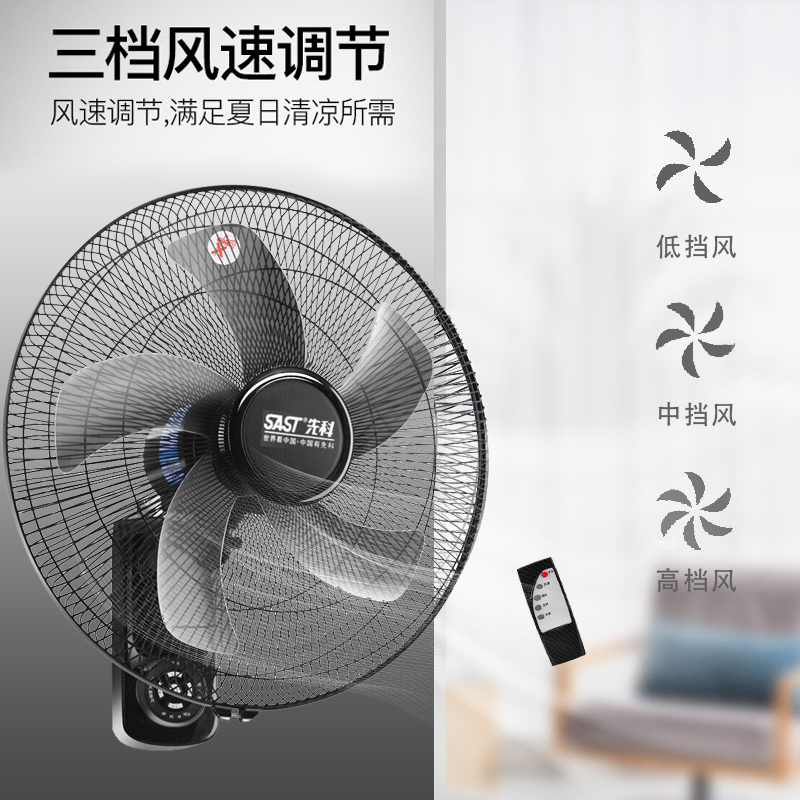 先科(SAST)风扇/遥控壁扇/18英寸五叶/壁扇/电风扇/餐厅宿舍商用大风力风扇FB-309R18价格:129.90元!