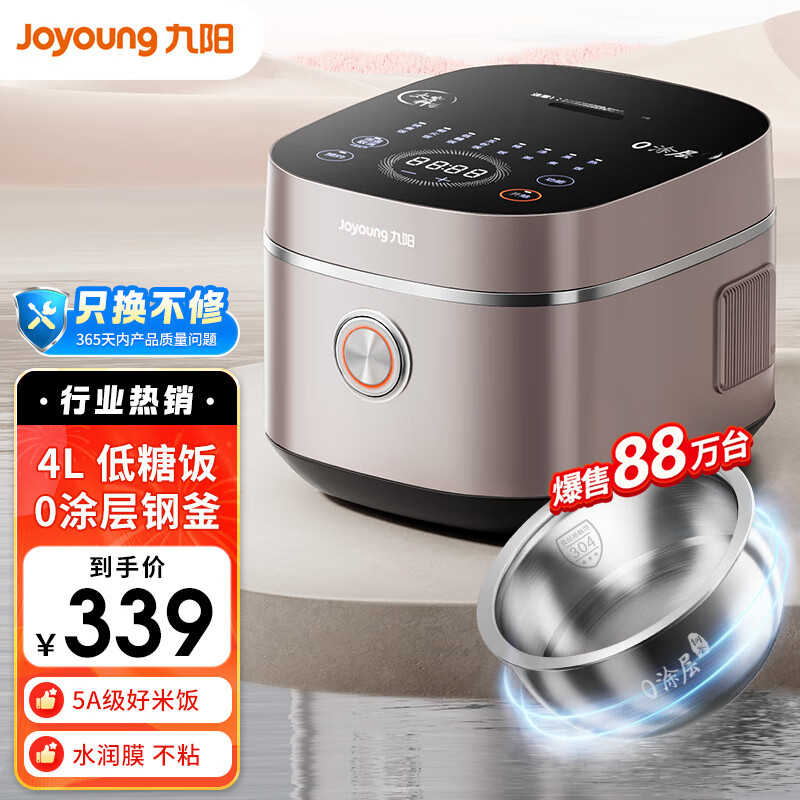 九阳电饭锅太空系列2-5人家用多功能一键低糖饭0涂层4L电饭煲40N3价格:339.00元!