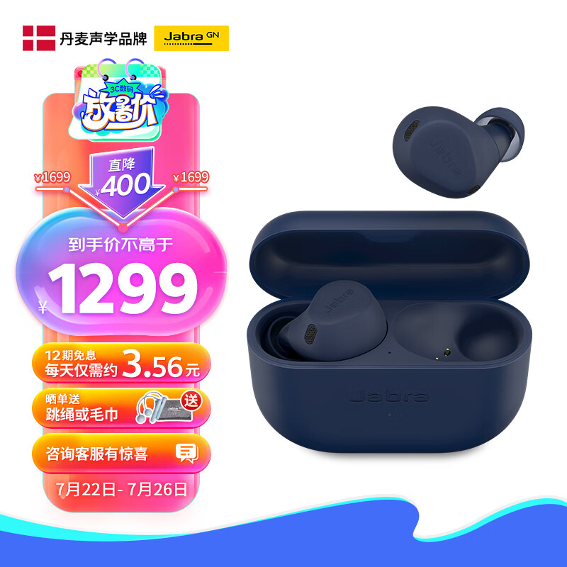 捷波朗(Jabra)Elite8 主动降噪真无线耳机 E8A半开放蓝牙耳机运动通话 IP68防水 蓝牙5.3 新一代Active 海军蓝价格:1299.00元!