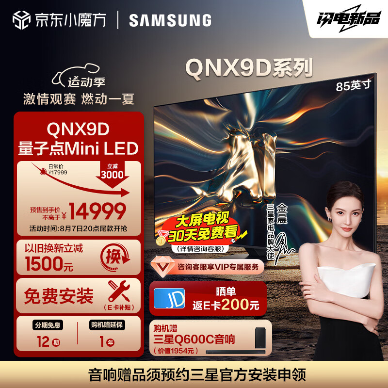 三星(SAMSUNG)85QNX9D 85英寸 Neo QLED量子点 Mini LED AI电视 120Hz高刷 HDMI2.1 QA85QNX9DAJXXZ价格:14999.00元!