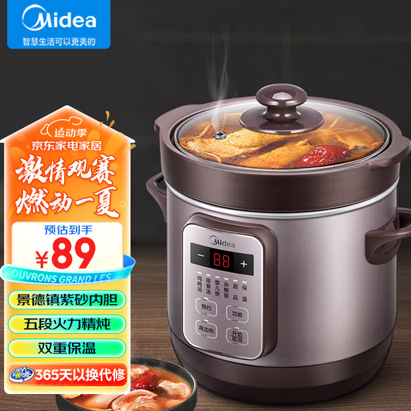美的(Midea)电炖锅 电炖盅 煲汤锅炖汤锅 电煮锅 紫砂锅 1.8L 智能预约定时保温 DG18Easy201价格:99.00元!