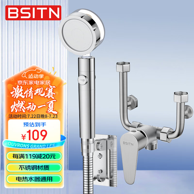 BSITN电热水器混水阀淋浴水龙头花洒套装U型明装冷热增压花洒开关21252价格:119.00元!