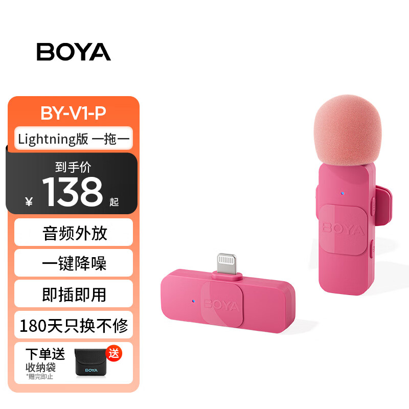 BOYA博雅BY-V1小粉麦手机带货直播麦克风无线领夹麦小蜜蜂 网红户外采访短剧视频录音无线话筒收音麦价格:163.00元!
