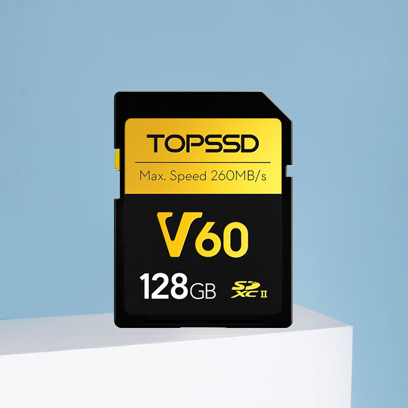 天硕(TOPSSD)v60sd卡 专业影像存储卡 UHS-II双芯高速存储 微单相机内存卡 128G价格:279.00元!
