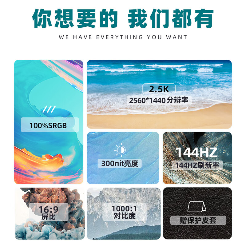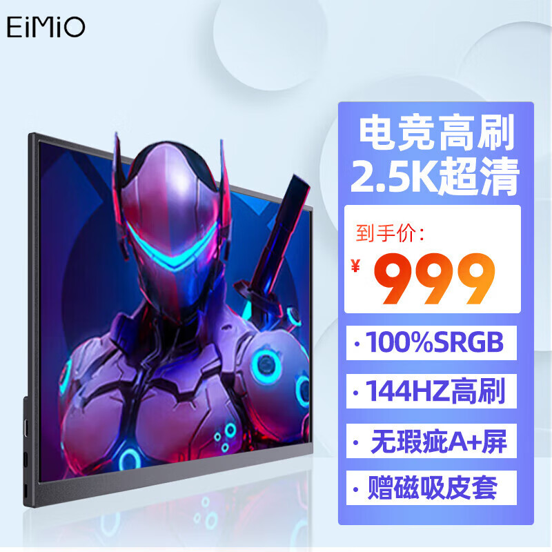 Eimio便携式显示器【2.5K/144Hz高刷】显示屏DCI-P3色域16.1英寸电脑笔记本副屏switch手机便携屏X16R价格:999.00元!
