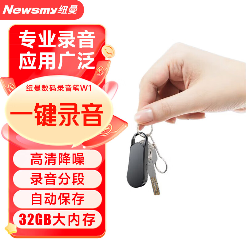纽曼数码录音笔 W1 32G 一键录音 大电量 高清降噪 录音分段 线控操作 学习培训商务会议 黑价格:188.00元!