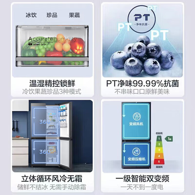 华凌479升一级能效双变频十字双开四开多门家用电冰箱超薄风冷无霜BCD-479WSPZH大容量冰箱价格:2199.00元!