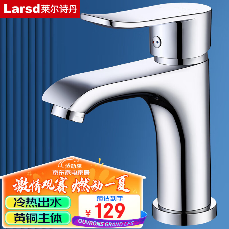 莱尔诗丹(Larsd)F073面盆水龙头 冷热水卫生间浴室柜黄铜龙头洗脸盆洗手盆龙头价格:129.00元!