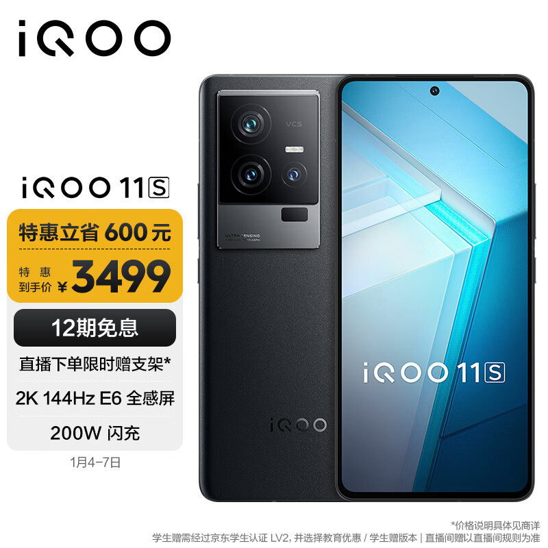 vivo iQOO 11S 16GB+256GB 赛道版 2K 144Hz E6全感屏 200W闪充 超算独显芯片 第二代骁龙8 5G游戏电竞手机价格:4099.00元!