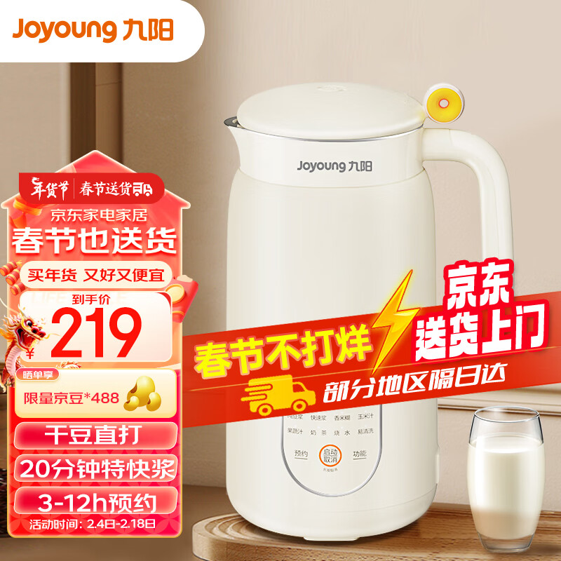 九阳(Joyoung)破壁机0.6L轻巧容量豆浆机 细腻免滤3-12h预约一键烧水易清洗多功能料理机DJ06X-D2526价格:219.00元!