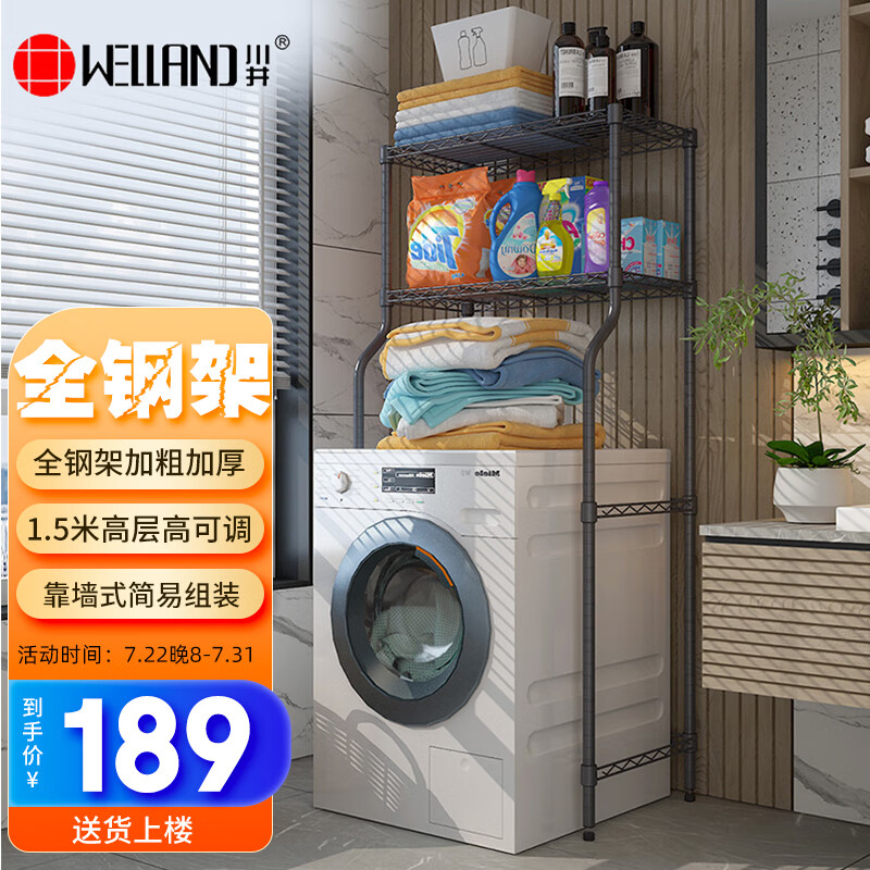 川井(WELLAND)洗衣机置物架 落地阳台浴室卫生间滚筒翻盖波轮洗衣机收纳架黑色价格:209.00元!