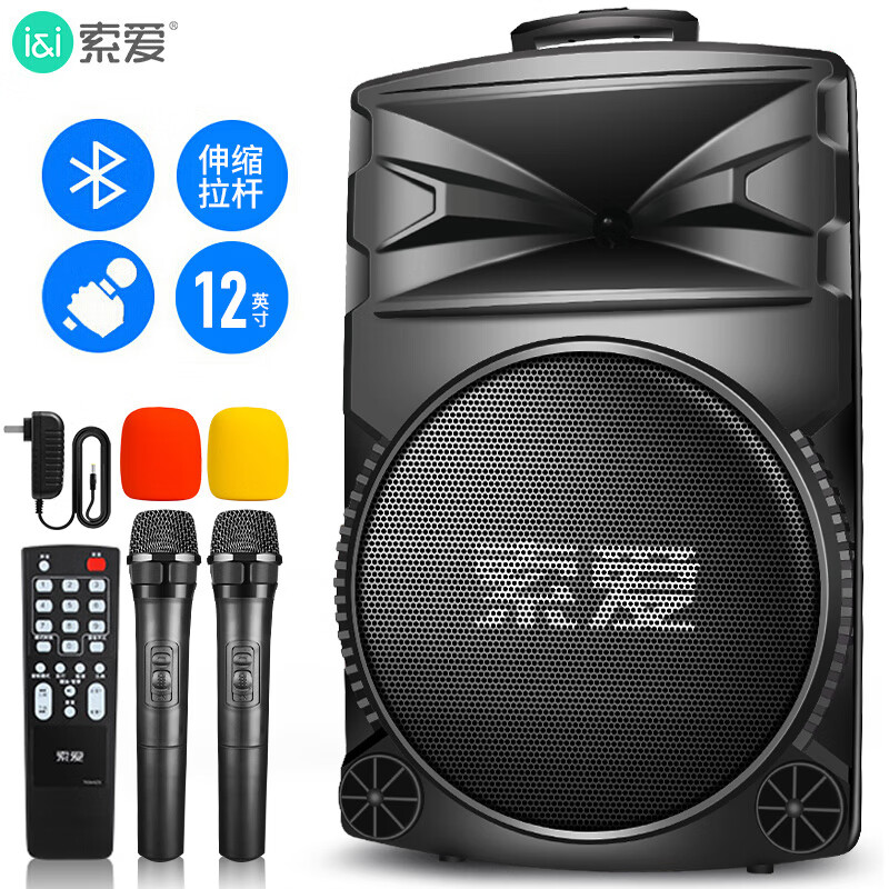 索爱(soaiy)A89WM 12英寸广场舞音响大功率低音炮移动户外K歌蓝牙拉杆麦克风音箱扩音器无线话筒摊 带适配器LF价格:429.00元!