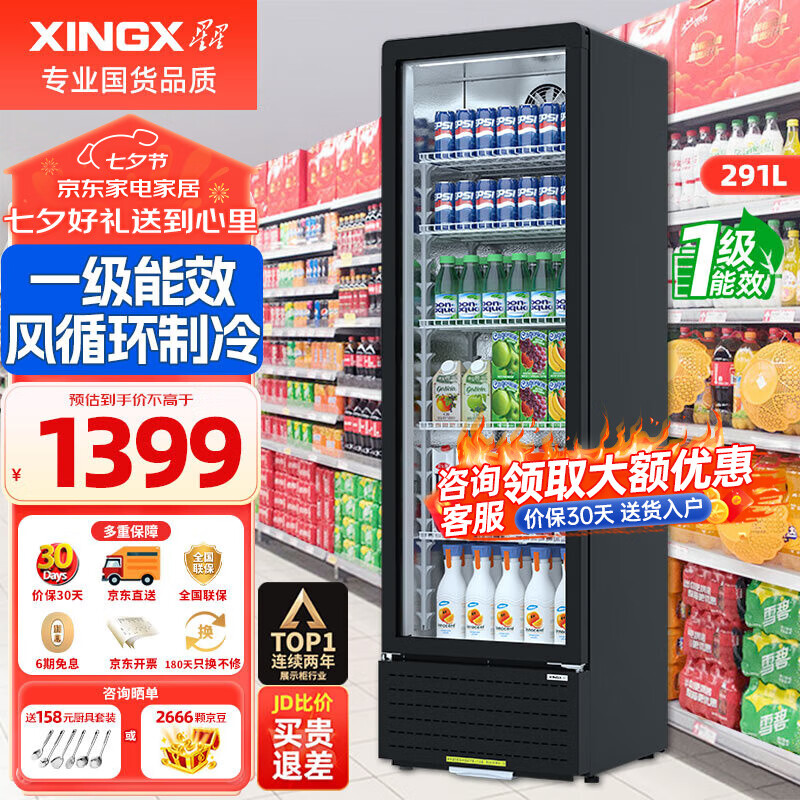 星星(XINGX)展示柜冷藏保鲜柜饮料柜商用一级能效单门立式冰柜冰箱风冷直冷超市便利店陈列柜蔬菜水果啤酒酒水 风直冷减霜1级能效291升LSC-310FYPE价格:1299.00元!