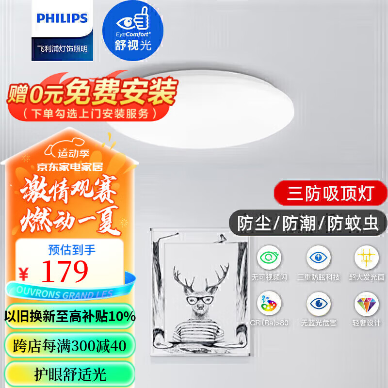 飞利浦(PHILIPS)led吸顶灯卧室灯客厅灯书房餐厅儿童房简约灯饰灯具36W65K恒妍价格:179.00元!
