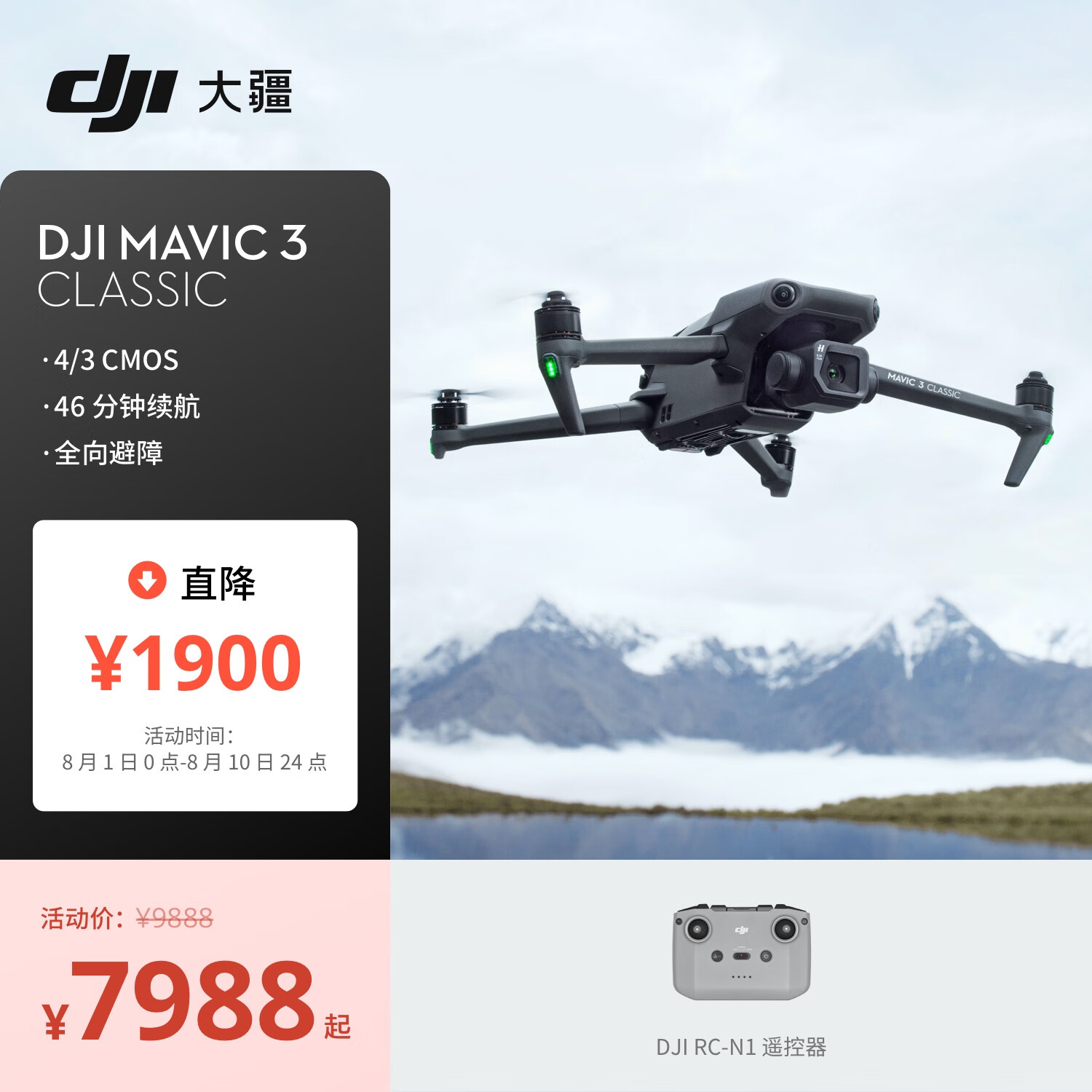 大疆 DJI Mavic 3 Classic (DJI RC-N1) 御3经典版航拍无人机 长续航遥控飞机+128G内存卡+随心换1年版价格:9070.90元!
