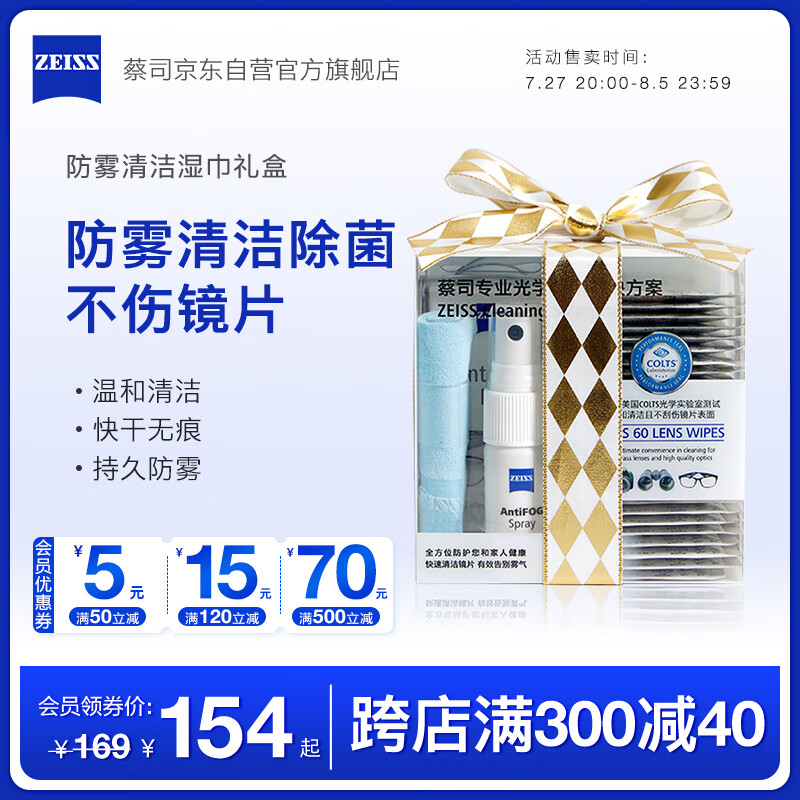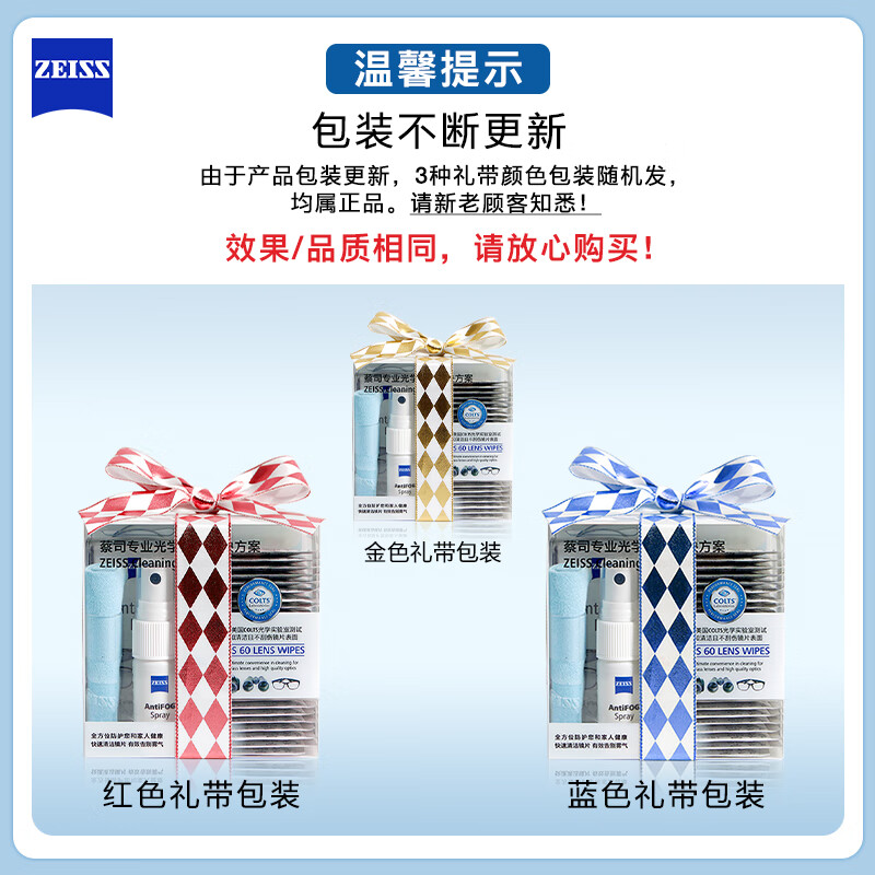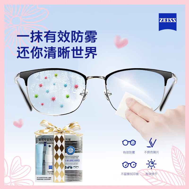 zeiss蔡司 镜片镜头专业光学清洁湿巾加防雾套装 近视眼镜 护目镜 游泳镜 防雾礼盒套装 节日礼物价格:169.00元!