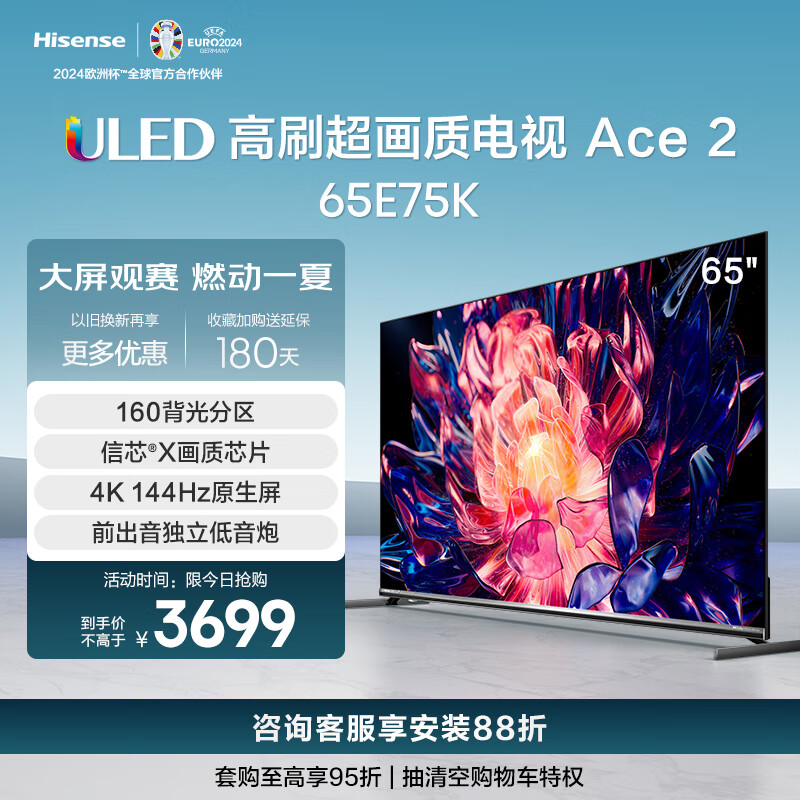 海信电视65E75K 65英寸 160分区 4K144Hz 信芯X画质芯片 智慧屏 液晶智能平板游戏电视机Ace2价格:3699.00元!