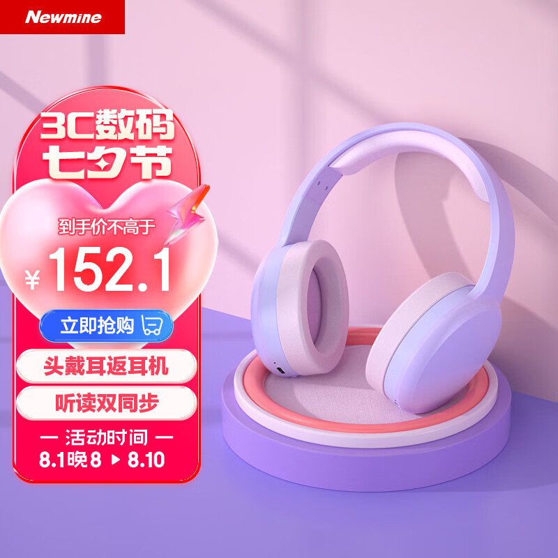 纽曼TB205头戴式蓝牙耳机背书阅读耳返无线耳机高音质音乐学生电脑网课游戏运动超长续航包耳式 薰衣草价格:169.00元!