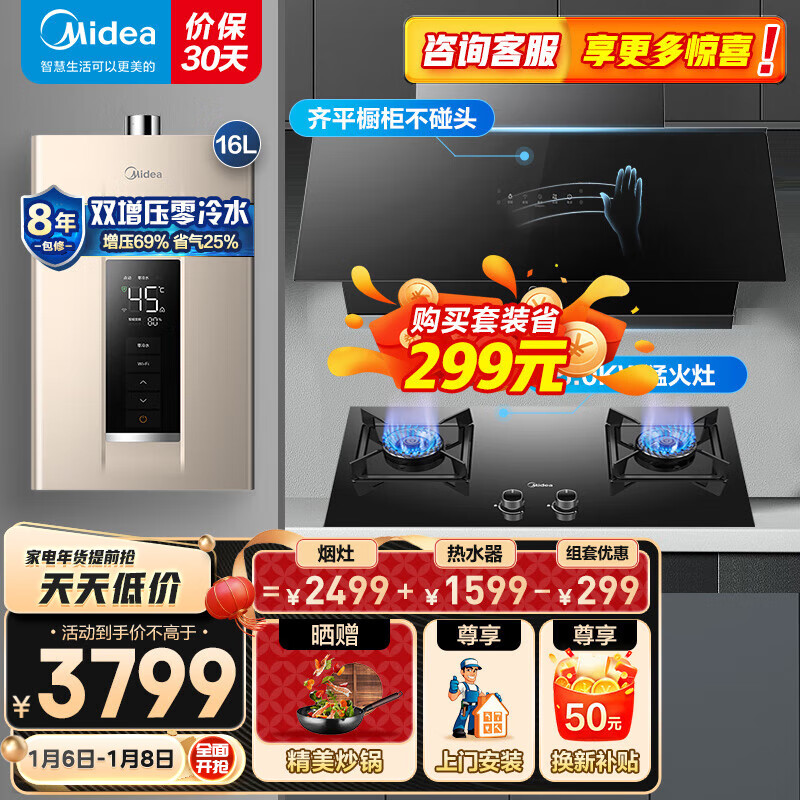 美的(Midea)侧吸抽油烟机灶具烟灶多件套装燃气热水器家用烟灶燃热厨房三件套J37+Q330+16NT1S天然气价格:3899.00元!