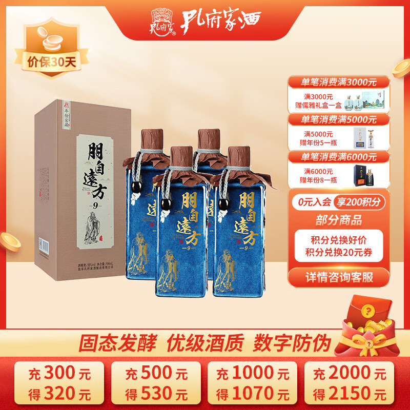 孔府家朋自远方9 浓香型白酒 52度 500ml*4瓶整箱装 中秋送礼 新老包装价格:1199.00元!