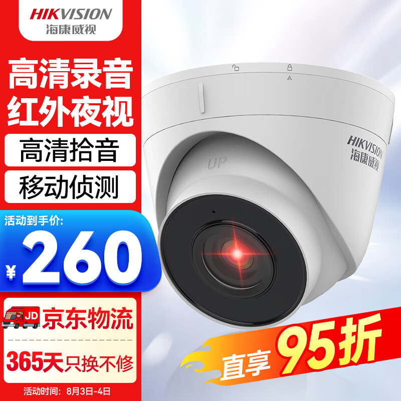 HIKVISION海康威视监控摄像头200万高清红外夜视可拾音商超学校室内半球T12HV3-LA 2.8MM价格:274.00元!