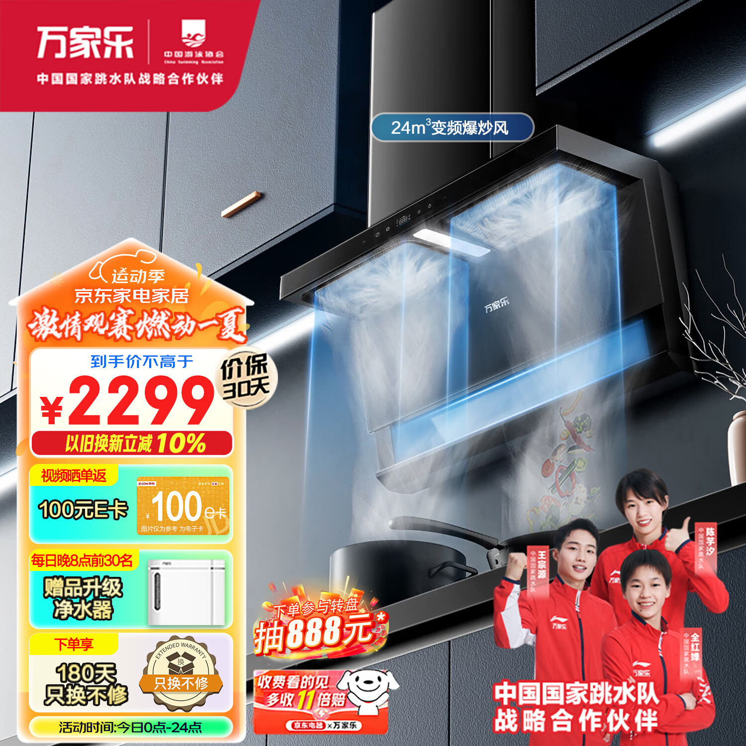 万家乐顶侧双吸油烟机 三腔变频巡航油烟机 25m3/min大风量挥手自清洗 1050Pa抽油烟机CXW-320-TAK8价格:2399.00元!